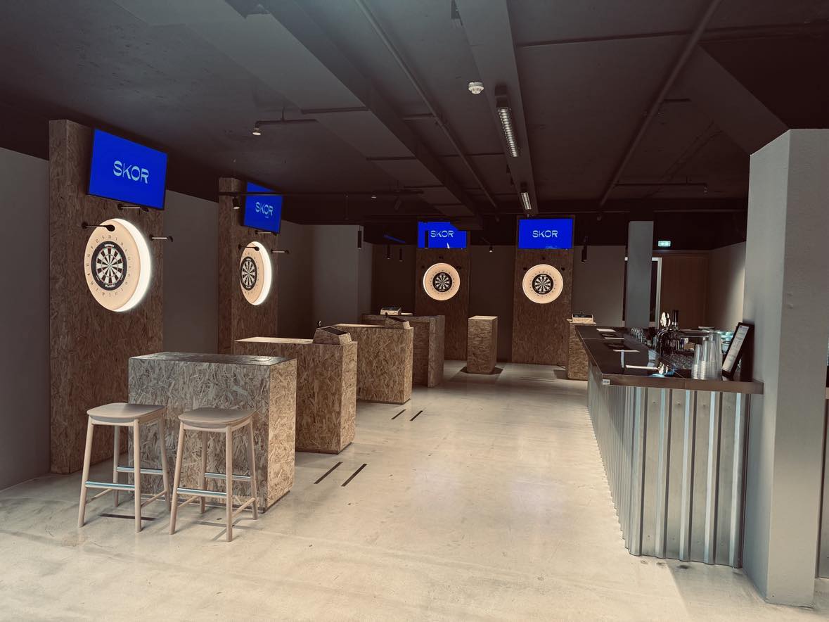 Skor is not a typical dart bar; it combines traditional darts with modern technology, featuring a computer system that tracks scores and assists with game selection. People of all skill levels can participate, as the games are designed for everyone to have fun, regardless of experience. The bar also offers a wide selection of drinks.