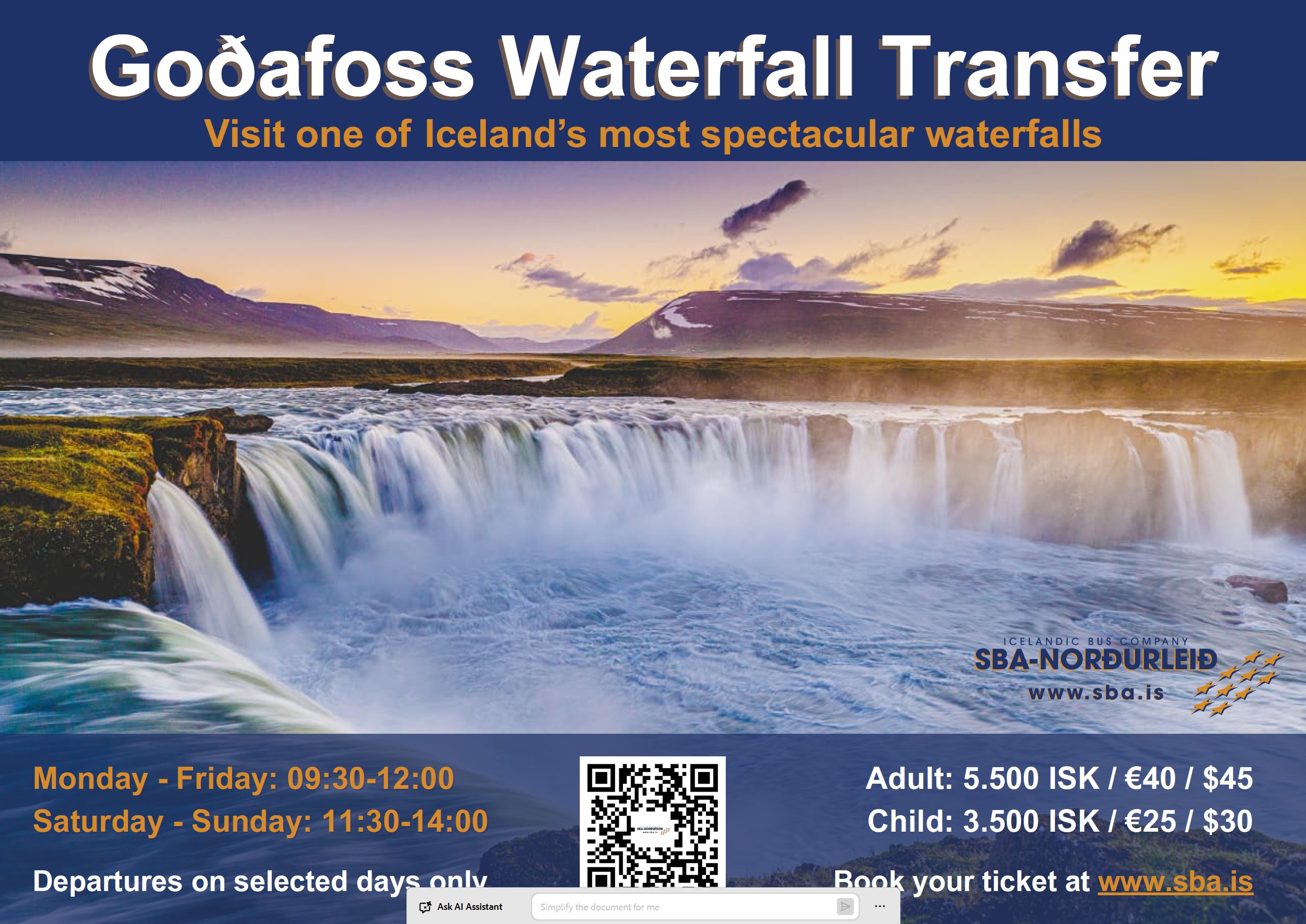From Akureyri to Goðafoss, timetable