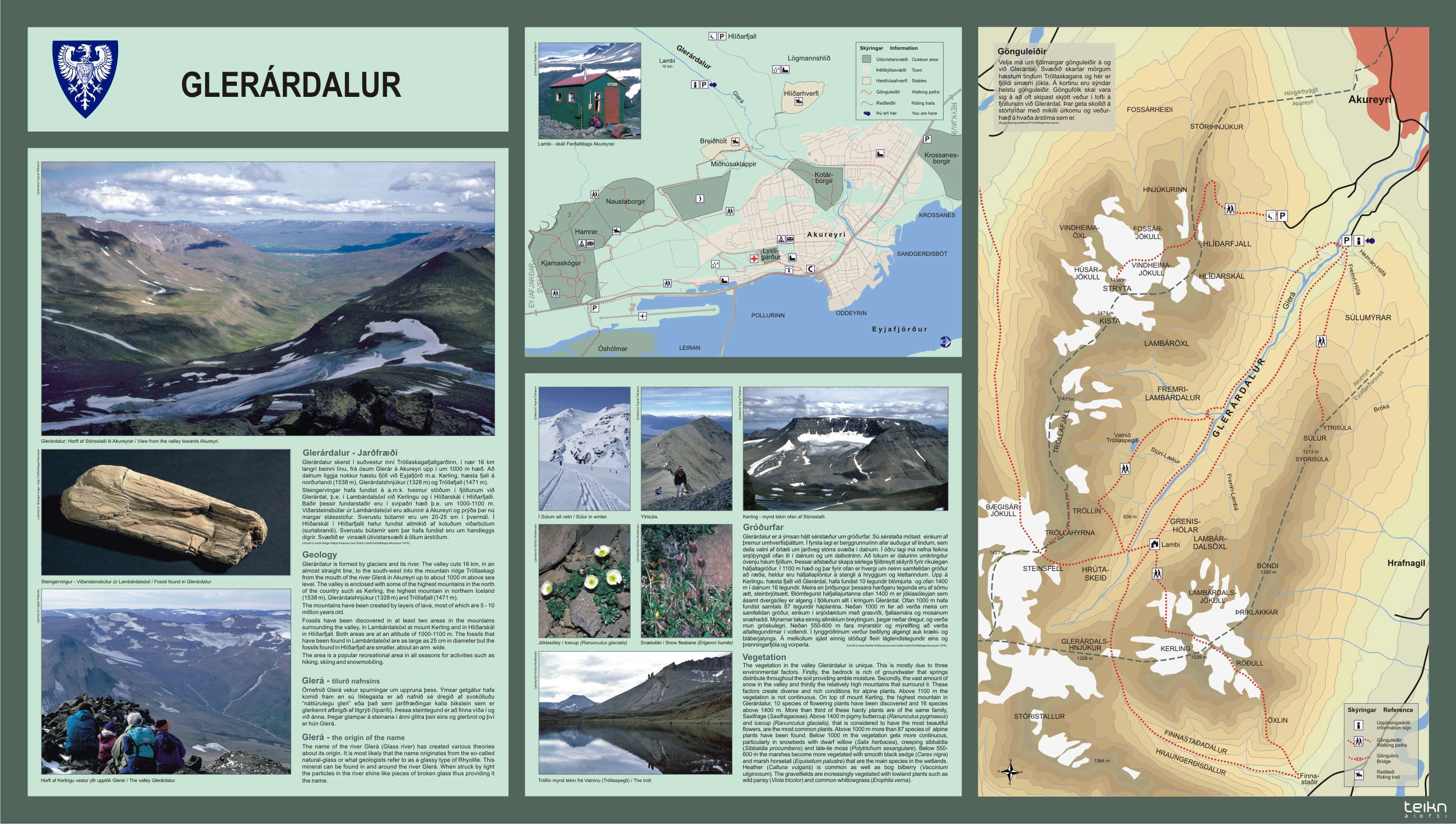 | Glerárdalur: *) Skilti á vegum Ferðafélags Akureyrar |
