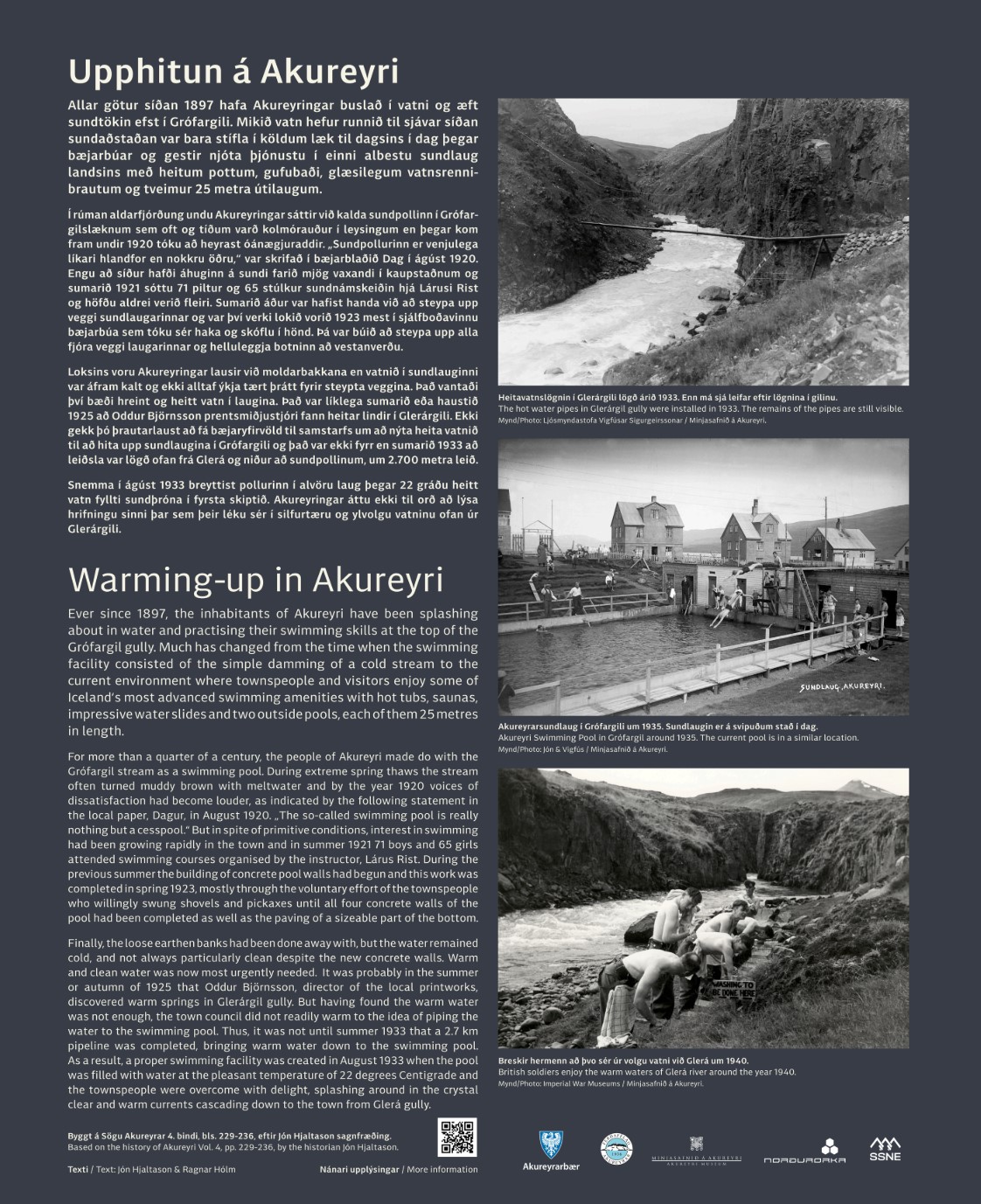 Hönnun skiltana var í höndum Teikn á lofti og jón Hjaltason sagnfræðingur ritaði textann. Myndirnar koma frá Minjasafninu á Akureyri og Þjóðminjasafninu.