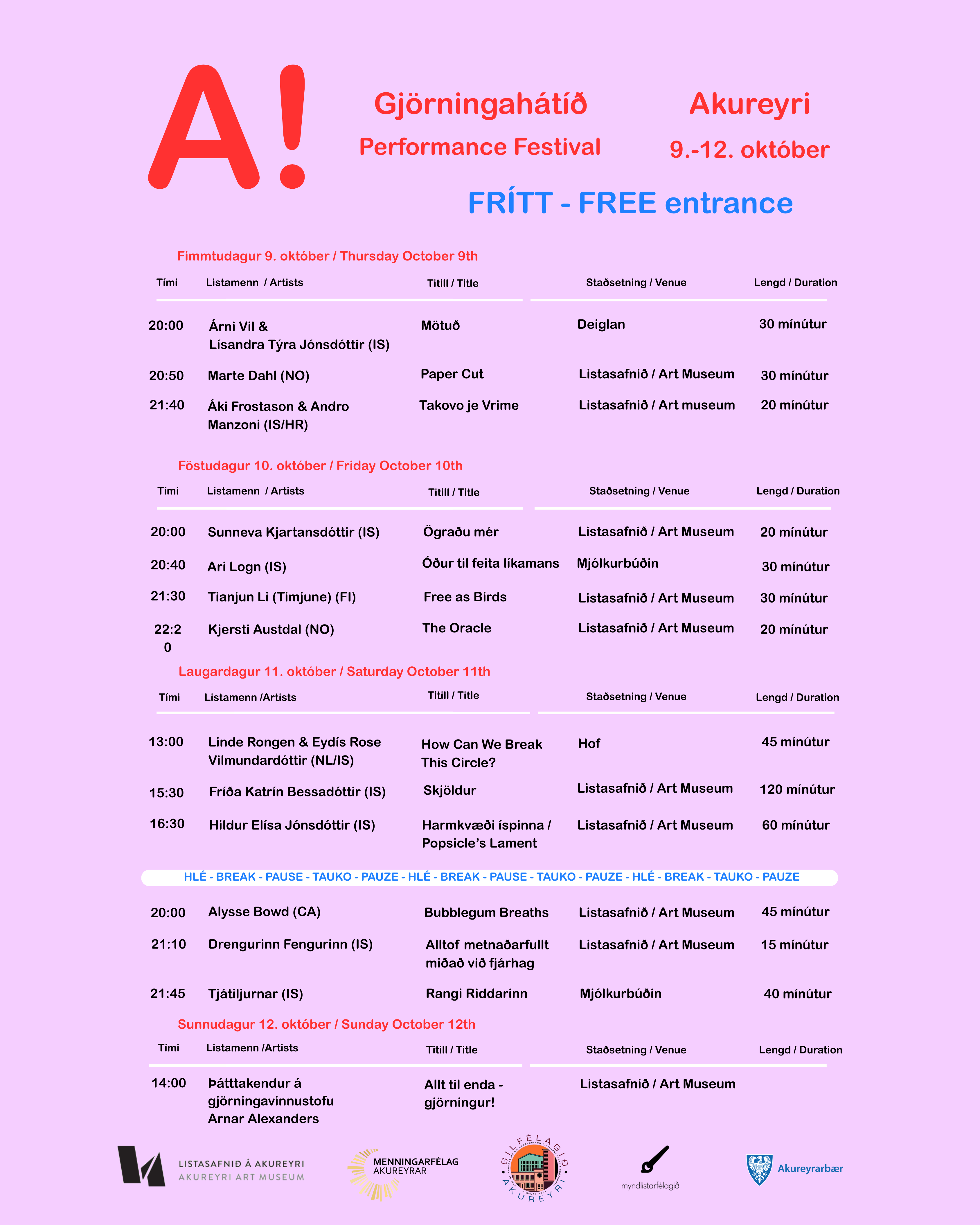 Nánari upplýsingar um hátíðina má finna á www.facebook.com/A.performance.festival